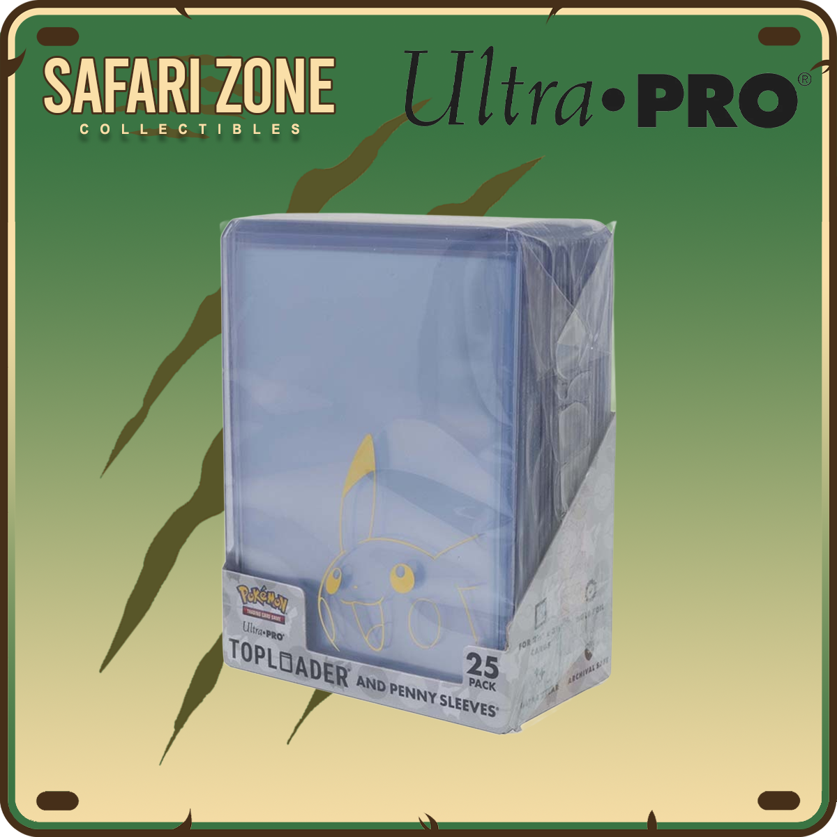 The Pikachu TOPLOADER and PENNY SLEEVES Combo Pack protects your valuable Pokemon Trading Card Game collection with a stunning foil effect. The Ultra PRO TOPLOADER is a rigid card protector made from ultra-clear PVC to keep your cards safe for storage, display, trades, and shipments. With outer dimensions of 3" x 4", these Toploaders are designed to safely store standard size cards (2-1/2" x 3-1/2") up to 35 points thick. Ultra PRO PENNY SLEEVES are made with archival safe, acid free, and non-PVC material. These sleeves minimize surface scratches and damage to your cards during storage or display. For the best protection of your cards, pair with the Ultra PRO TOPLOADER for an acid free inner layer and rigid structural integrity in the outer layer.